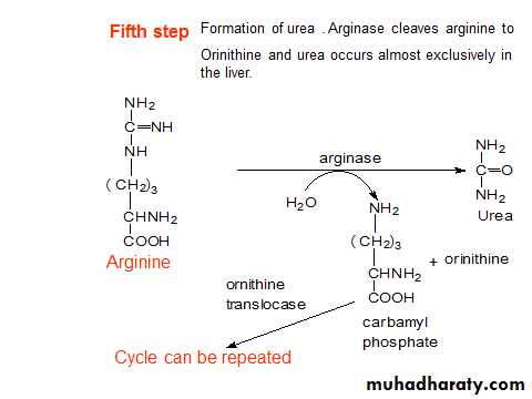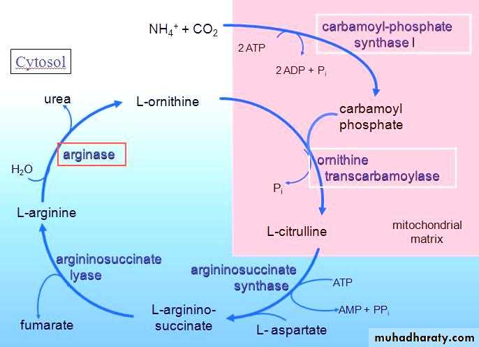 Urea diffuse from the liver and transported in the blood to the kidney ,filtered and excreted in the urine in about 25-30 g daily.A portion of urea diffuse from the kidney to the intestine where it is cleaved to CO2+ NH3 by bacteria Urease enzyme.