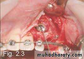 In palatally positioned canine, a window is excised in the soft tissue before replacing the flap, if the bracket is not attached at the same operation the window is packed with a suitable pack until it epithelializes for 2-3 weeks. In buccal approaches it is more appropriate to suture the flap above the crown (apically repositioned flap) and the area below covered with a pack to ensure that the tooth will erupt into an area of keratinized mucosa.