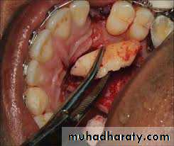 ➢ Surgical transplantation; in selected cases, when the first molar is badly carious or unrestorable, the impacted tooth is carefully extracted and transplanted in the socket of the first molar after extraction and splinted.
