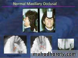 • Vertex occlusal projection; which produces an axial view of the incisors, will demonstrate the bucco-palatal localization of the canine.