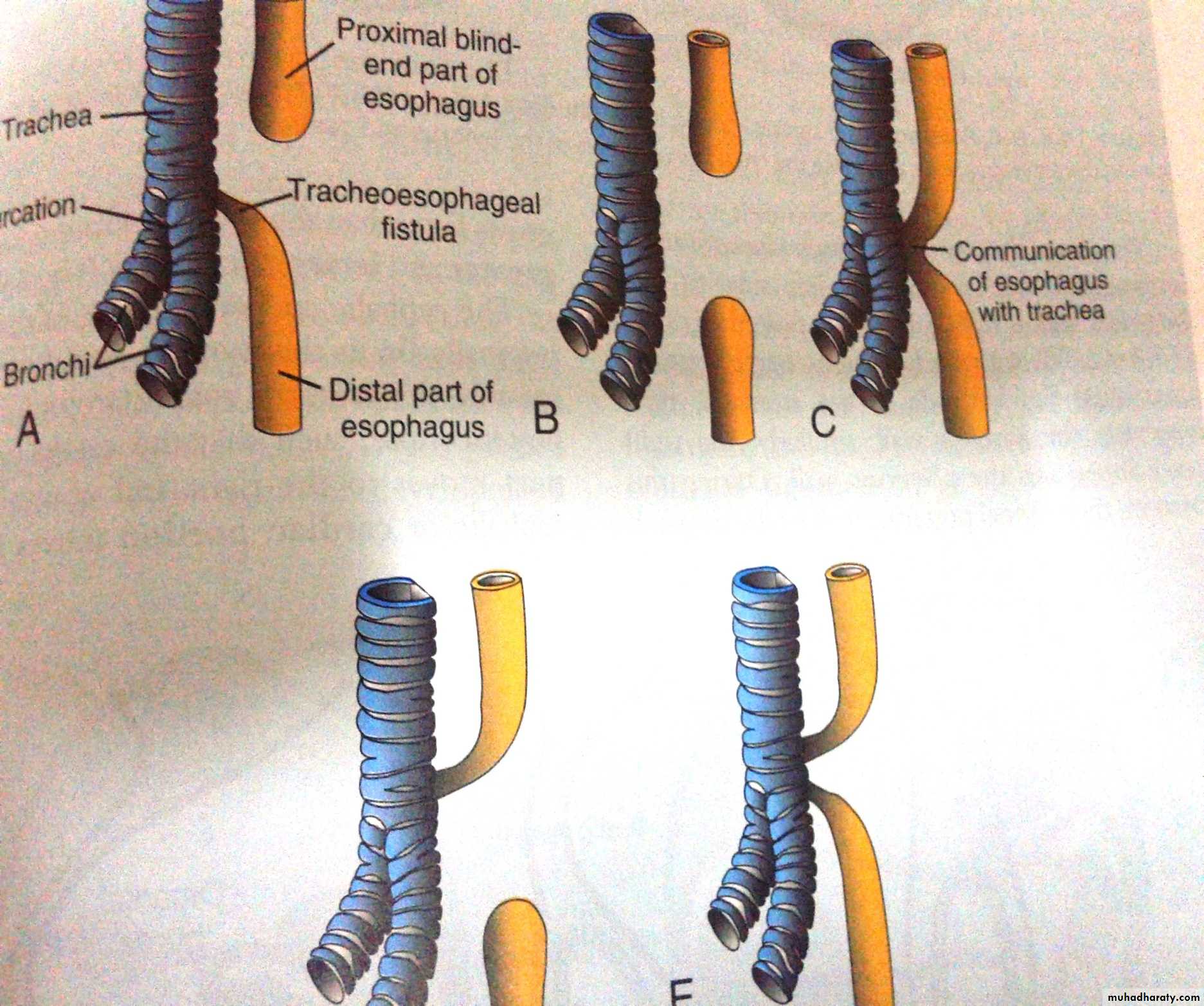 • Tracheo-esophageal fistula due to failure of separation.