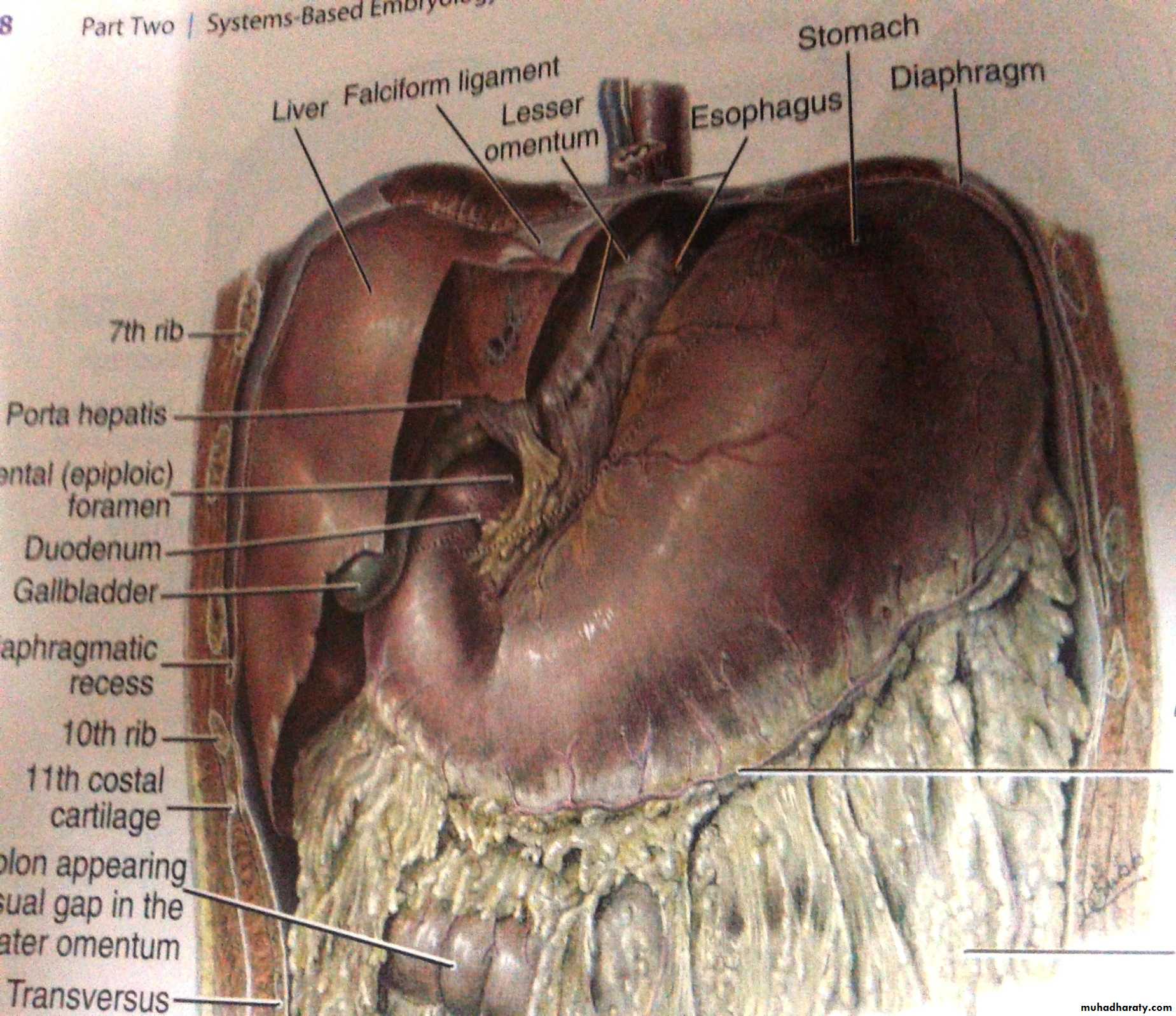 It develops from the caudal part of the for gut as spindle –shaped dilatation which attached ventrally by ventral mesogastrium and dorsally by dorsal mesogastrium.The liver will formed inside the ventral mesogastrium ,thus dividing it into :