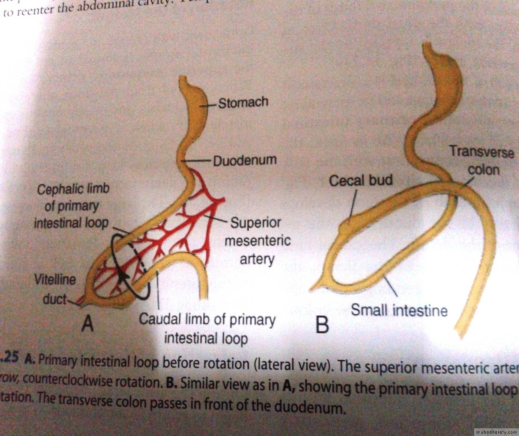 • The mid gut loop may rotate in opposite direction(clockwise) leading to reverse position of the duodenum and becomes superficial to the colon.