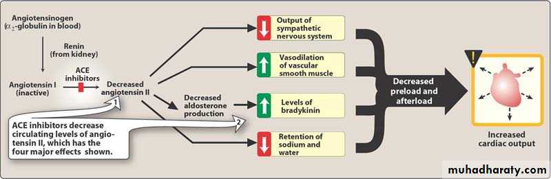 ACE inhibitors improve mortality, morbidity, exercise tolerance, left ventricular ejection fraction.Drugs used in H.F