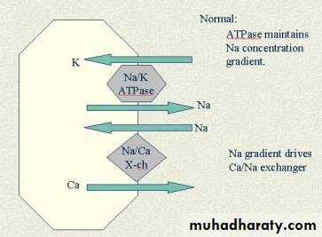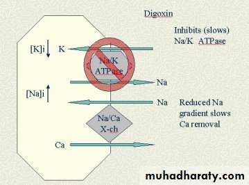 • Digoxin :• Inhibition of Na/K ATPase pump increase intracellular sodium concentration – eventually increase cytosolic calcium.
