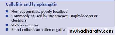 Suppurative wound infections take 7–10 days to develop, and even cellulitis around wounds caused by invasive organisms (such as the β-haemolytic Streptococcus) takes 3–4 days to develop.Major surgical infections with systemic signs, evidence of spreading infection, cellulitis or bacteraemia need treatment with appropriate antibiotics.