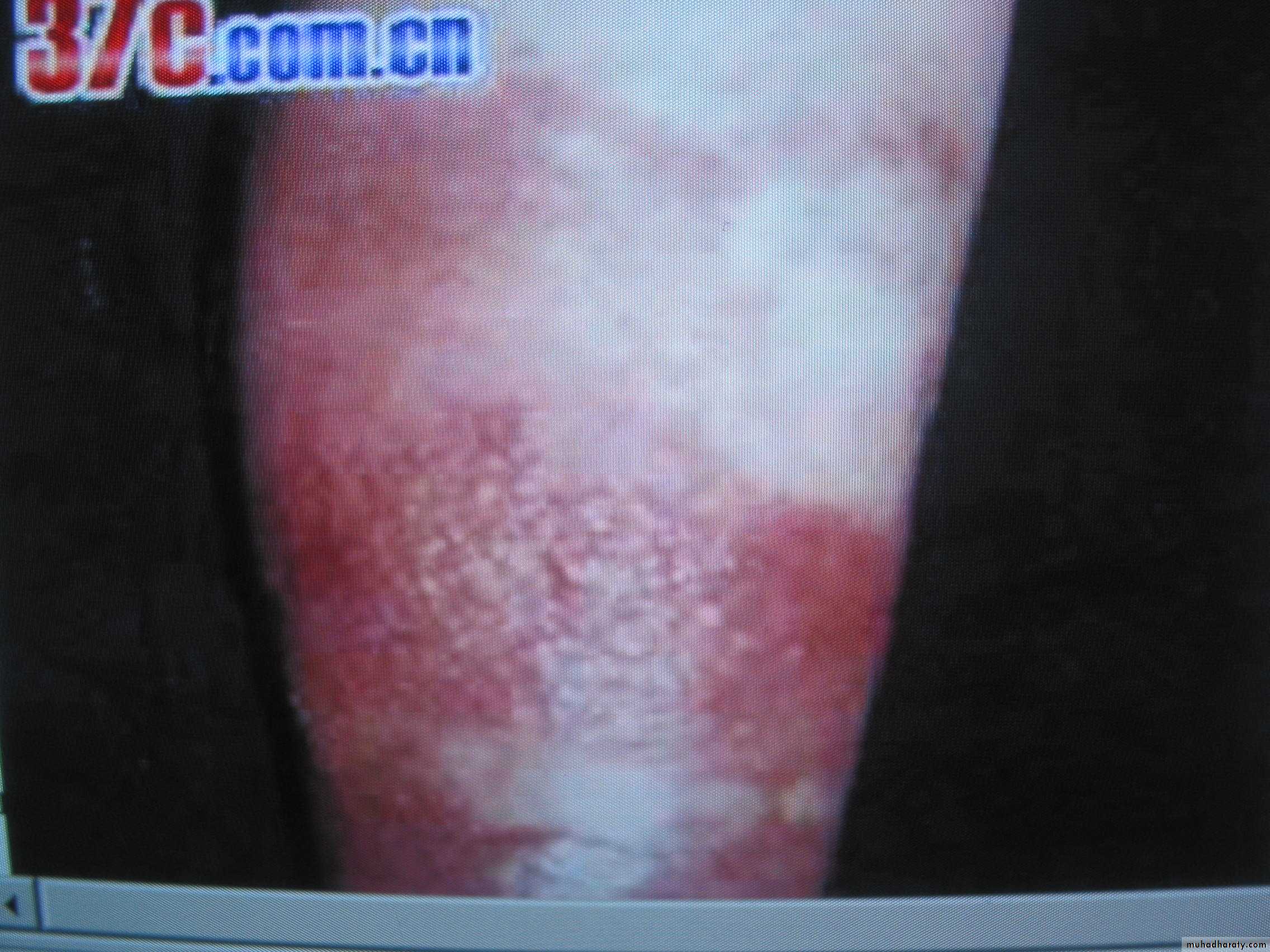 4. Skin green or dark, multiple blebs, full of dark fluid with foul smelling .