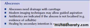 5.Fluctuation can be elicited in subcutaneous abscess, in deep abscess like gluteal and perinpheric abscess.