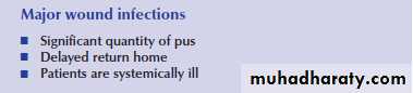 may discharge pus or infected serous fluid but should not be associated with excessive discomfort, systemic signs or delay in return home.Major SSI