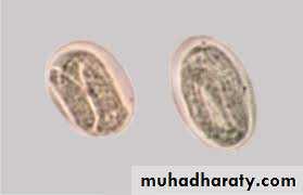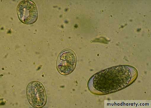 Shape: oval . Clear, thin shelled Similar to hookworm but are smaller.