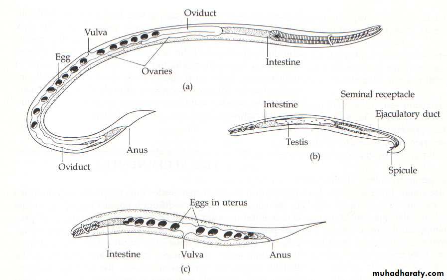 • Habitat: females live in the superficial tissues of the small intestine (duodenum and jejunum)