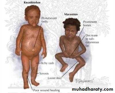Chronic starvation occur in many parts of the world.It is due to caloric content of diet below minimal requirement and inadequate specific nutrients specially proteins .