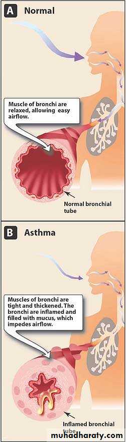 • Definition• Asthma is an inflammatory disease of the airways characterized by acute bronchoconstriction causing shortness of breath, cough, wheezing, and rapid respiration.