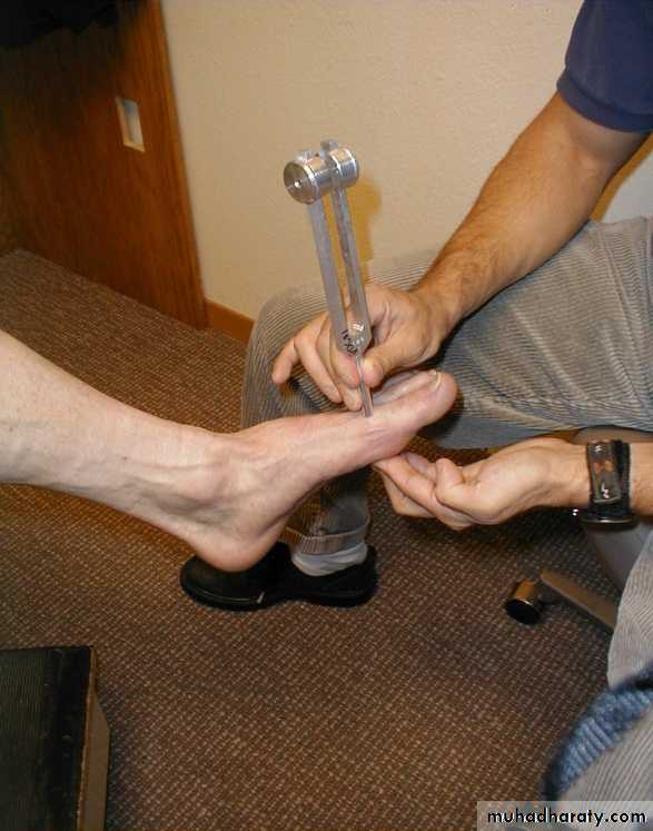 For this reason, application of vibration (from a “tuningfork”) to different peripheral parts of the body is an important tool used by neurologists for testing functional integrity of the dorsal columns.
