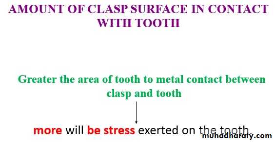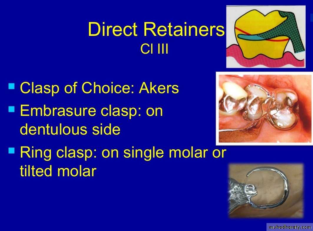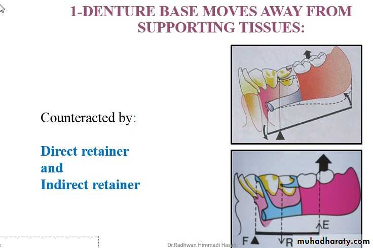 Away from tissue resisted by retentive clasp arm