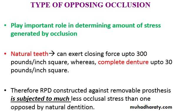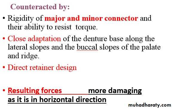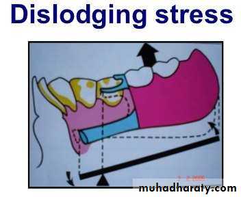 • Biomechanics at play within the oral cavity must be taken into consideration and the denture design must be made in accordance, to counteract the mechanical forces/stress acting within the oral cavity.• Forces to consider: