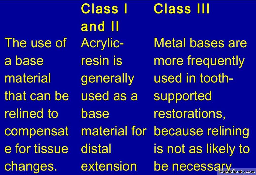 • Tooth supported- (all Kennedy Class III dentures)