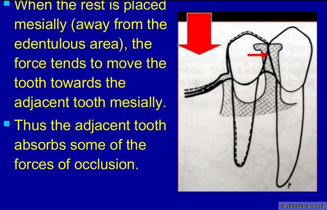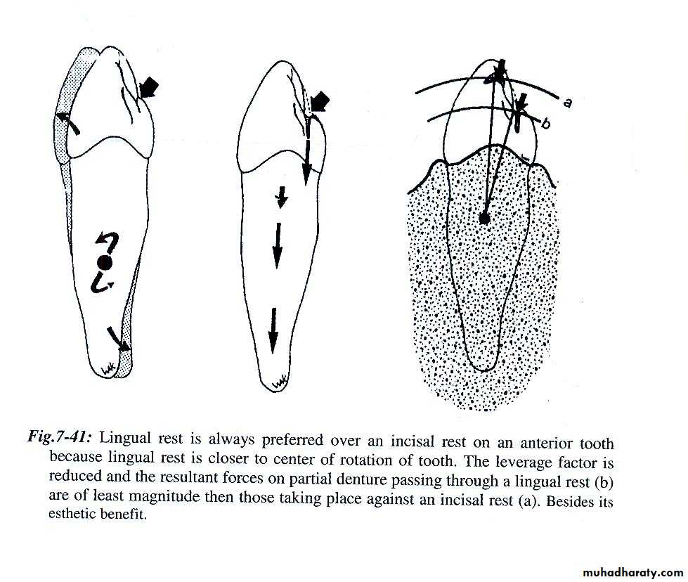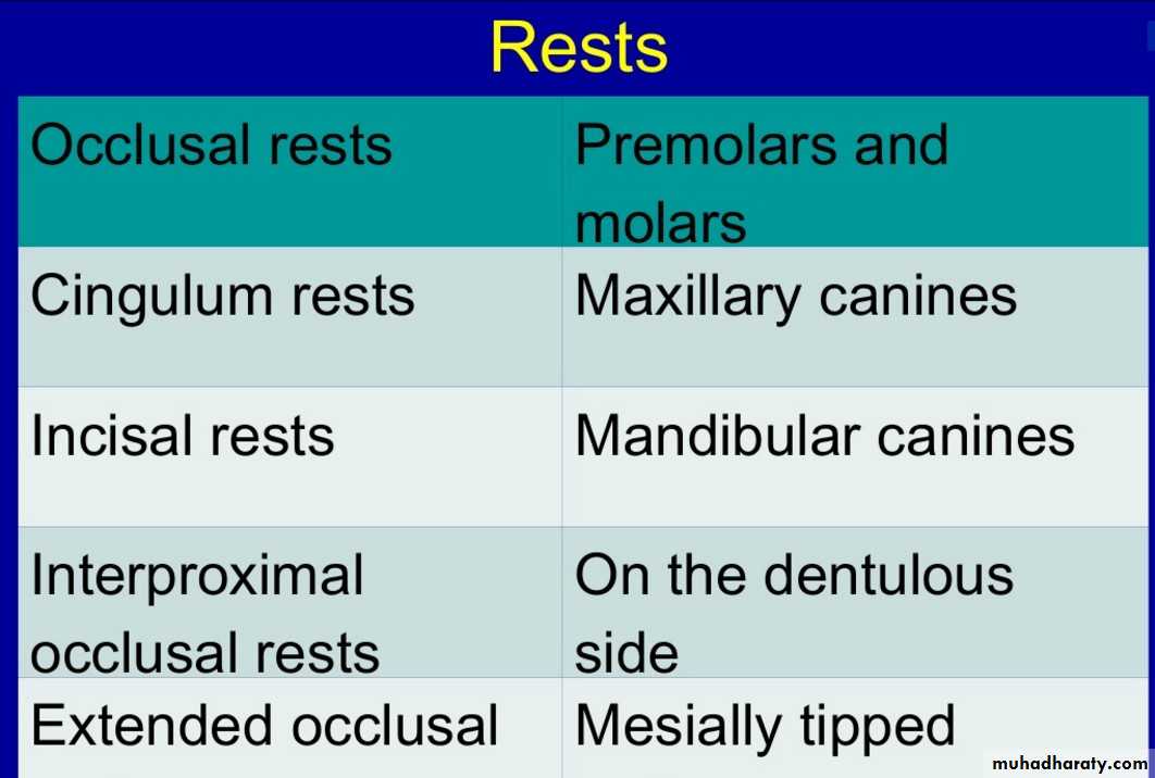 Movement :Toward tissues resisted by rest on abutment teeth