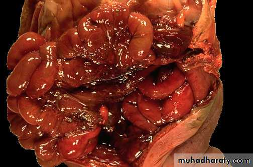 4. Serosa is granular, dull and gray.