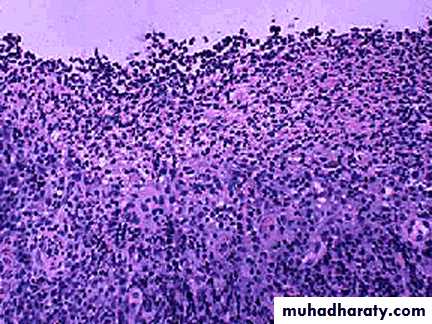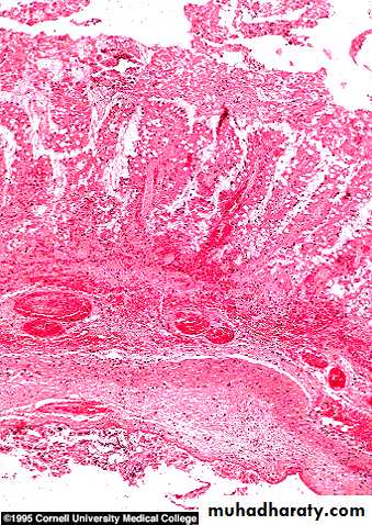 Ulceration in severe active disease.