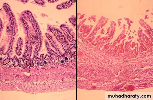 Chronic mucosal damage (crypt distortion) with villous blunting in SI, atrophic changes, and metapalsia.