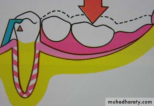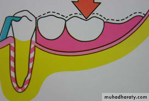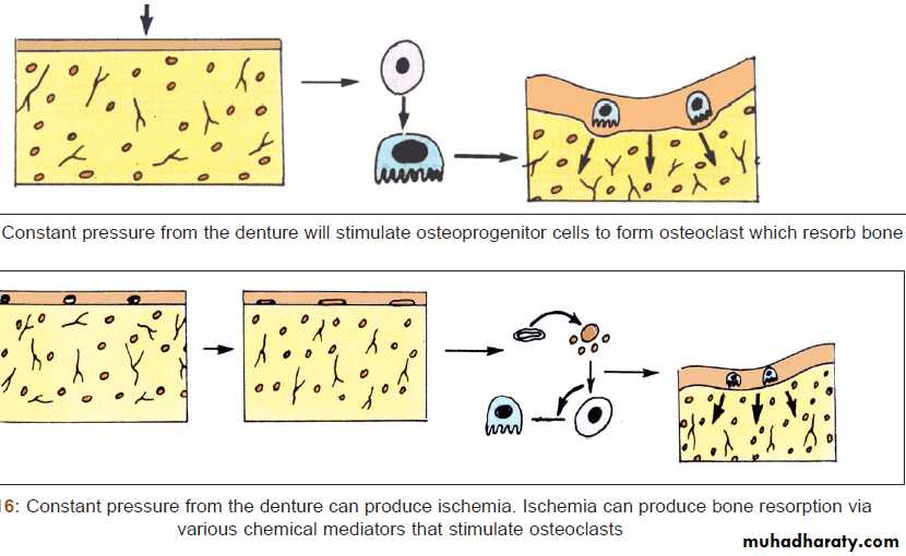 This gives the denture an inherent property to constantly compress the tissues even when there is no occlusal load Since the tissues are constantly compressed there will be excessive bone resorption. 1-Bone resorption occurs due to two reasons: