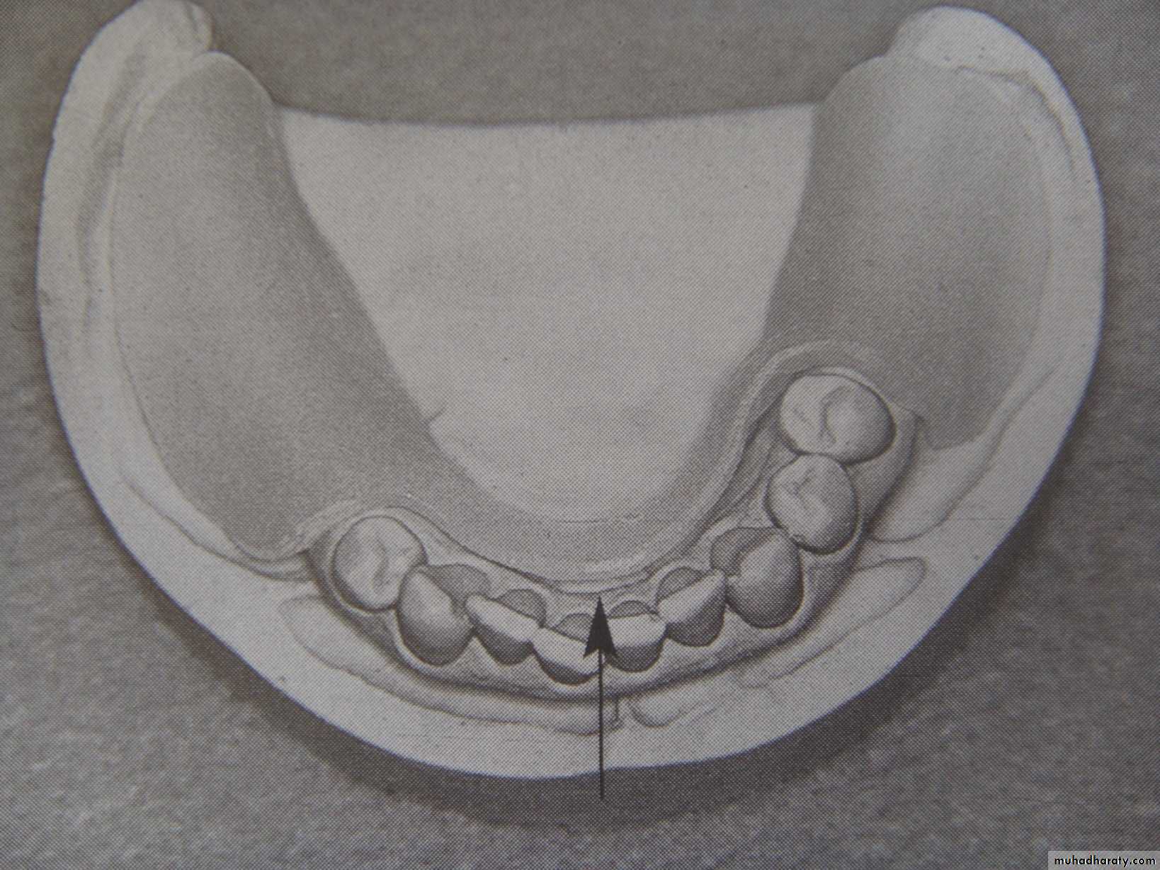 • In the mandibular arch, the buccal shelf area acts as a primary stress-bearing area. It has a thick cortical plate covered with a firm mucosa. It is also placed almost perpendicular to the occlusal stress. The slopes of the ridge can act as secondary stress-bearing areas and they resist horizontal stress.