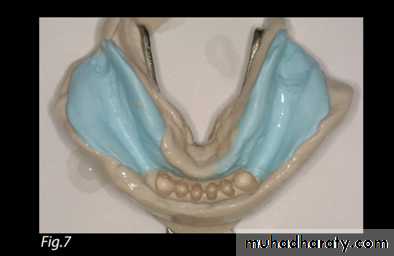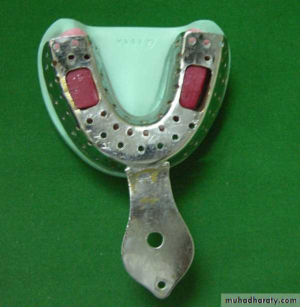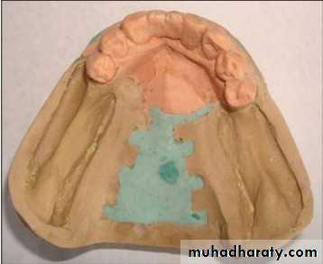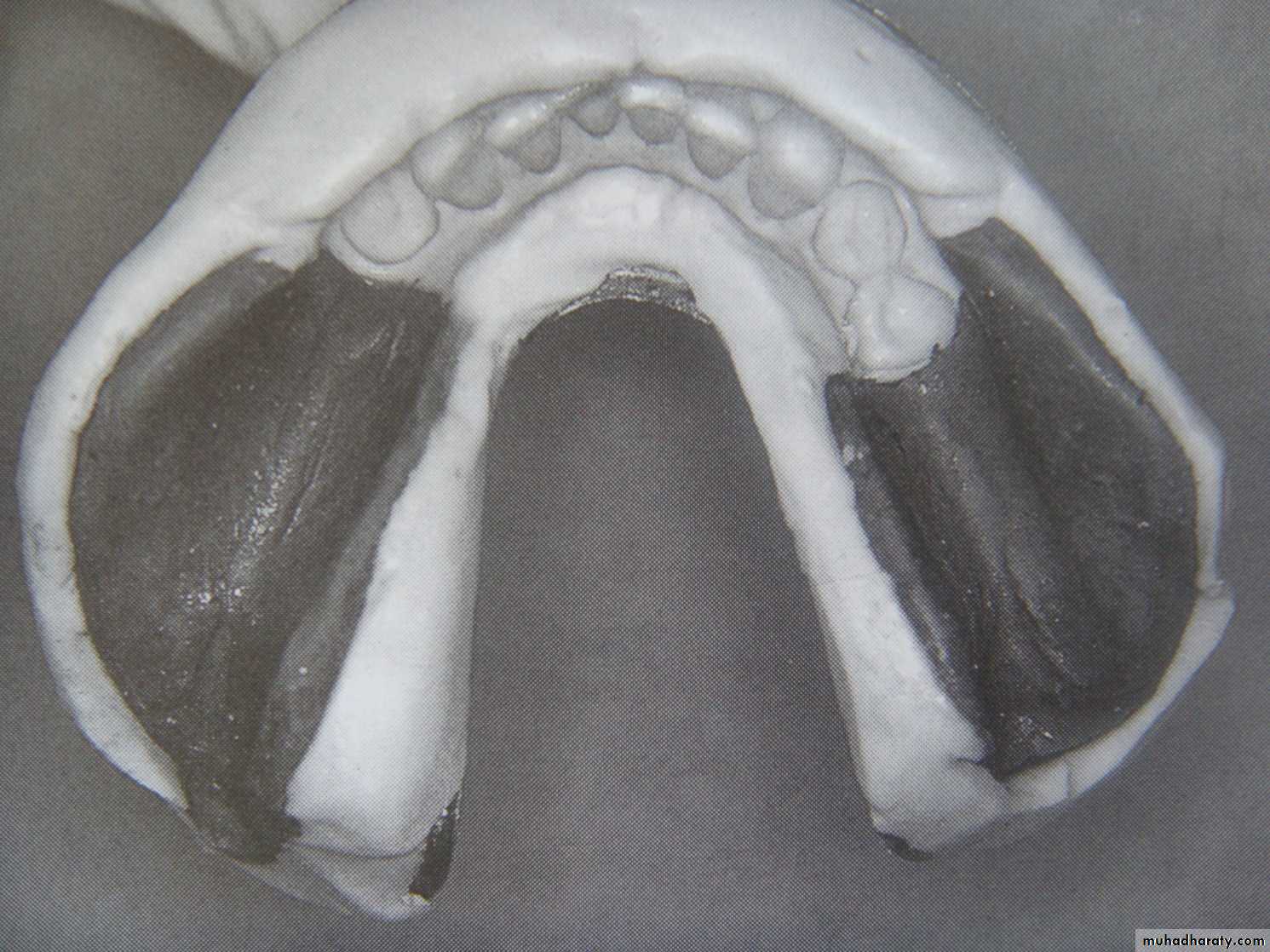 Impression of saddle area is made in zinc oxide eugenol paste without pressure( stopper on tissue side)Super impression is made with a modified tray applying finger pressure.