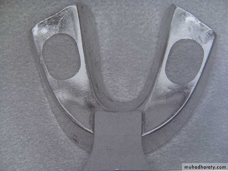 Generally, functional impressions require a special tray to closely adapt to the tissues and provide adequate space for even thickness of the material. As we do not require a functional impression of the dentulous area, we prefer to limit the functional impression to the saddle area. The remaining areas are recorded with an anatomic impression using a stock tray.
