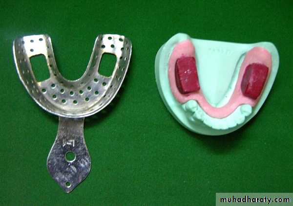 First anatomic impression in alginate is madeAcrylic resin tray over saddle area is prepared