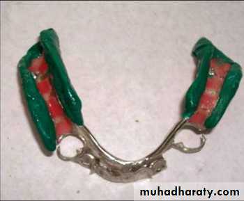 soft tissues are recorded in the compressed form, the denture will not exert additional stress on the abutment teeth during functional loading. By this procedure, the occlusal load can be evenly distributed between the soft tissues and the abutment teeth. This prevents the concentration of deleterious forces on the abutment teeth.