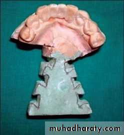 away from the cast, the edentulous areas of the impression will be projecting in free space