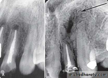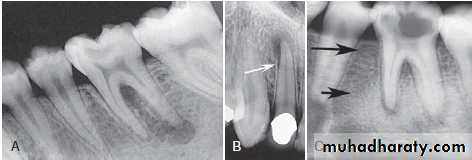 • After RCT and periapical surgery → apical radiolucency → apical scar.