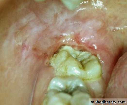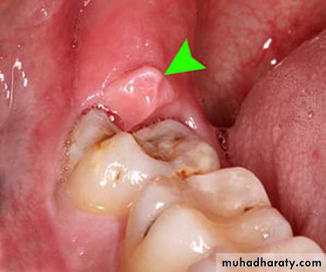 • Periodontal lesions & pericoronitis : Lesion extended into overlying soft tissues that surrounding the crown of the partially erupted tooth.