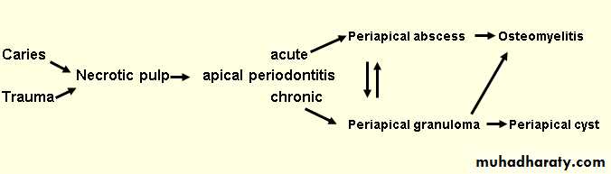 • Necrotic pulp → periapical inflammatory lesion.