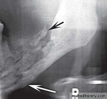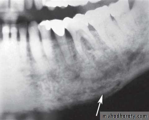 *In extensive cases, new bone formation at inferior cortex, posterior border of the ramus, and