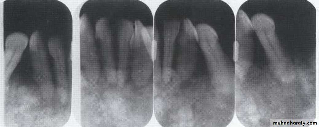 Radiographic examination: • Panoramic, intraoral periapical, and occlusal films.