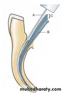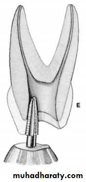 • Broach should not be forced apically into the canal.