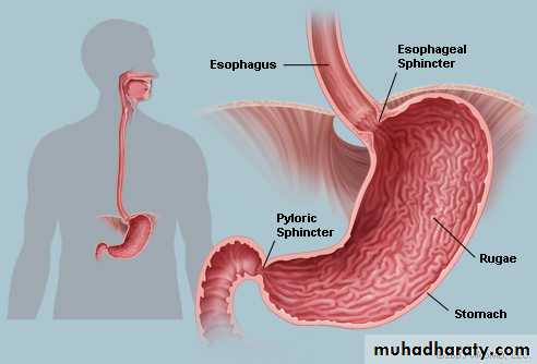 • Rugae: are longitudinal folds in the mucous layer that appear when the stomach is empty and these folds disappear when the stomach is filled