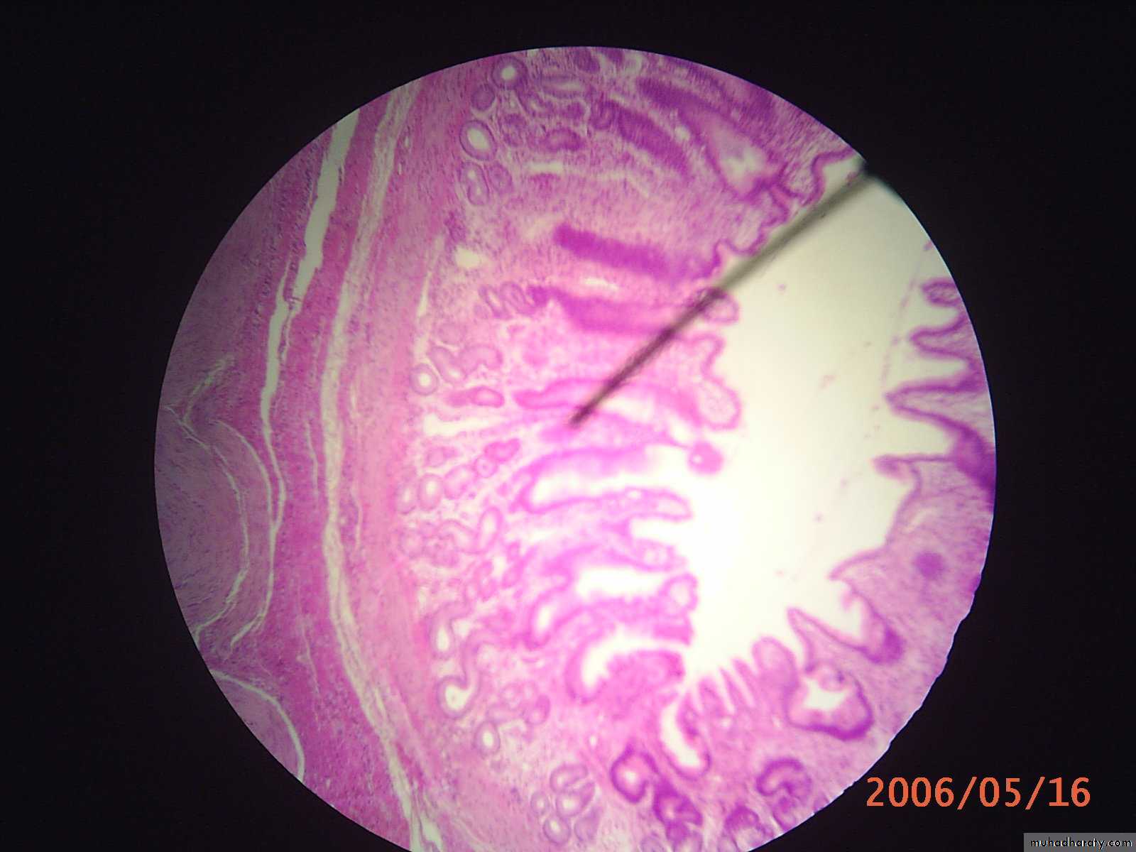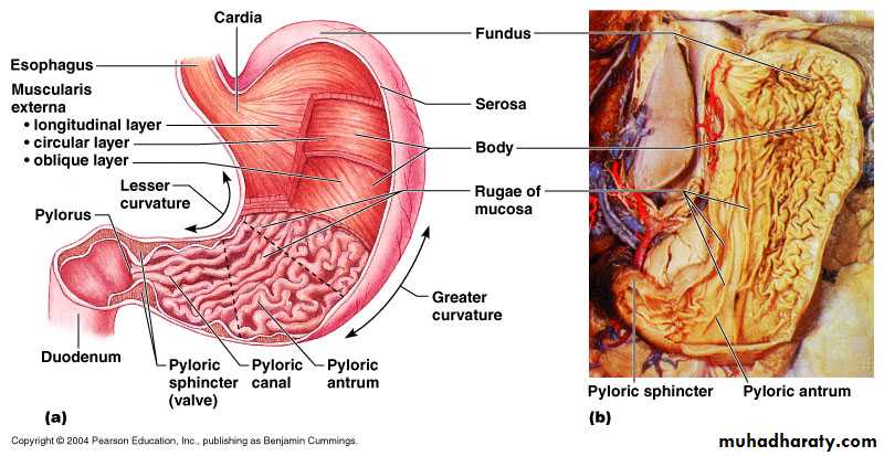 b. Middle circular layer :(is clearly evident along the entire stomach and especially pronounced pyloric region where it forms the pyloric sphincter)