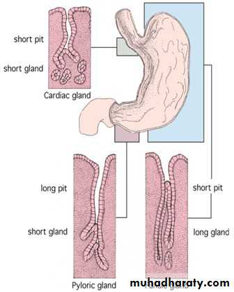 2-Pyloric glands : *-long gastric pits and short glands