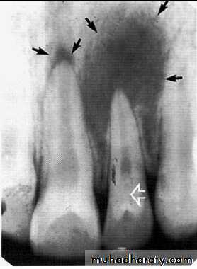 *Adjacent teeth displaced, loosened , often resorbed