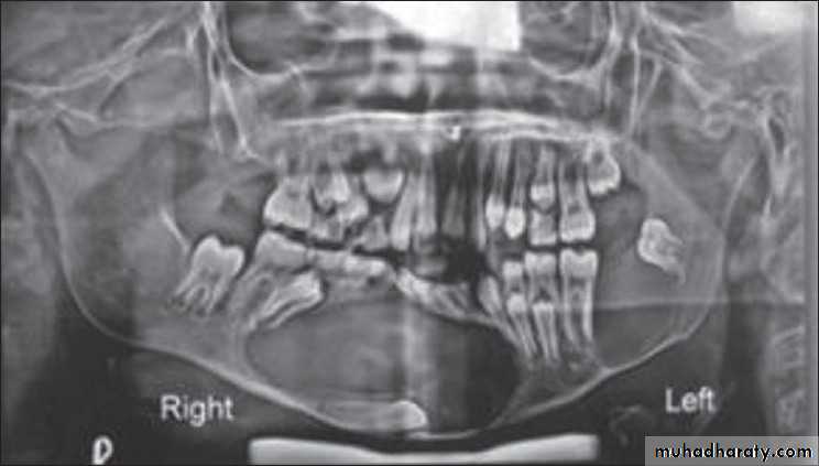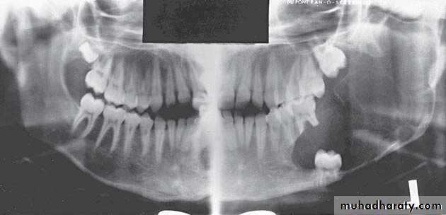 *Shape: is either unicystic or soap bubble-like lesion, Expansile, *Tooth migration is common,teeth in the area are vital.