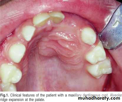 • * Arises from attached gingiva & with growth cupping the cortical plate.• *The teeth are vital.