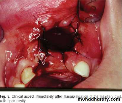 If the R.L.enlarged, pain,sinus,or no regression in the size of lesion after 6months (P. A. Cyst).