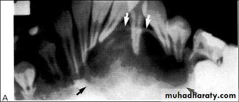 of the floor of the nasal fossa (arrows).• Globulomaxillary Cyst
