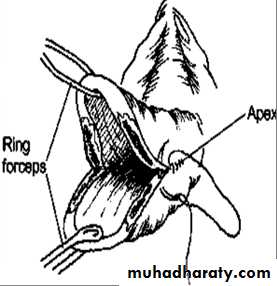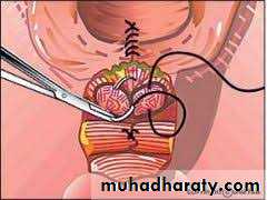 **Immediate repair: Continuous locked cat gut sutures are taken starting from above the apex to control bleeding from the retracted blood vessels.**Tight pack: may be needed to control bleeding from a raw surface area.