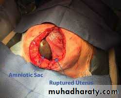 ...in incomplete rupture, the fetous still inside the uterus with suprapubic painful tender swelling which is an accumulated blood in the vesico-uterine pouch