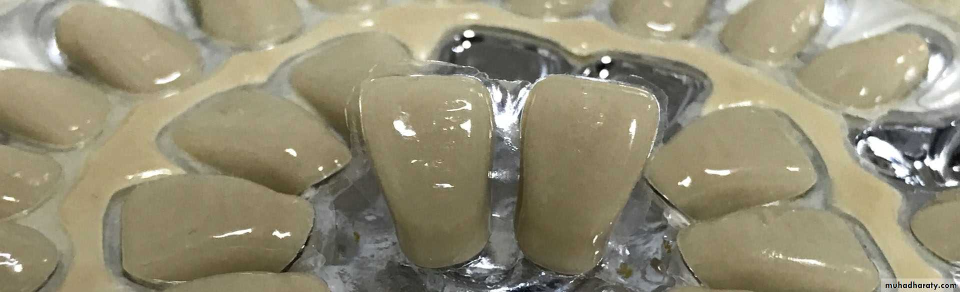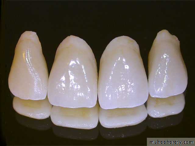 Artificial porcelain teeth are produced to standard shapes and sizes by using moulds which are approximately 30% larger than required, in order to allow for shrinkage during firing. Small holes or metal pins are incorporated in the base of the porcelain teeth during their production. These are used to give mechanical attachment to the denture base.properties