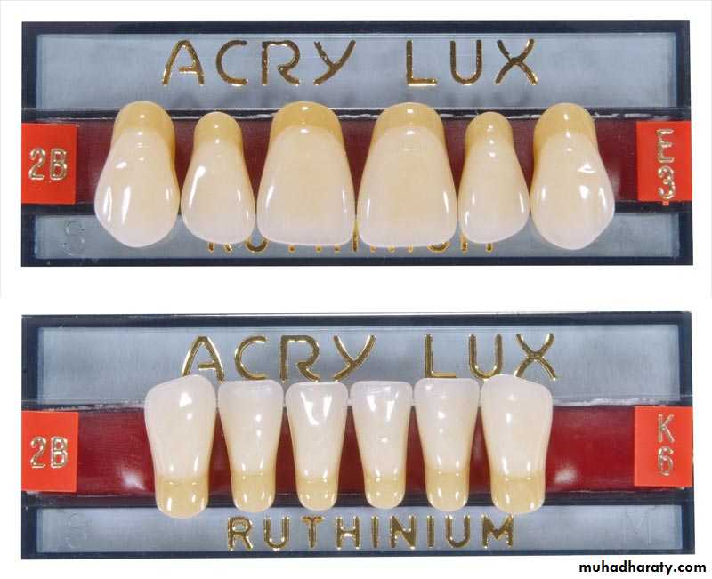 The two materials which are commonly used for the production of artificial teeth are acrylic resins and porcelain.Acrylic resins